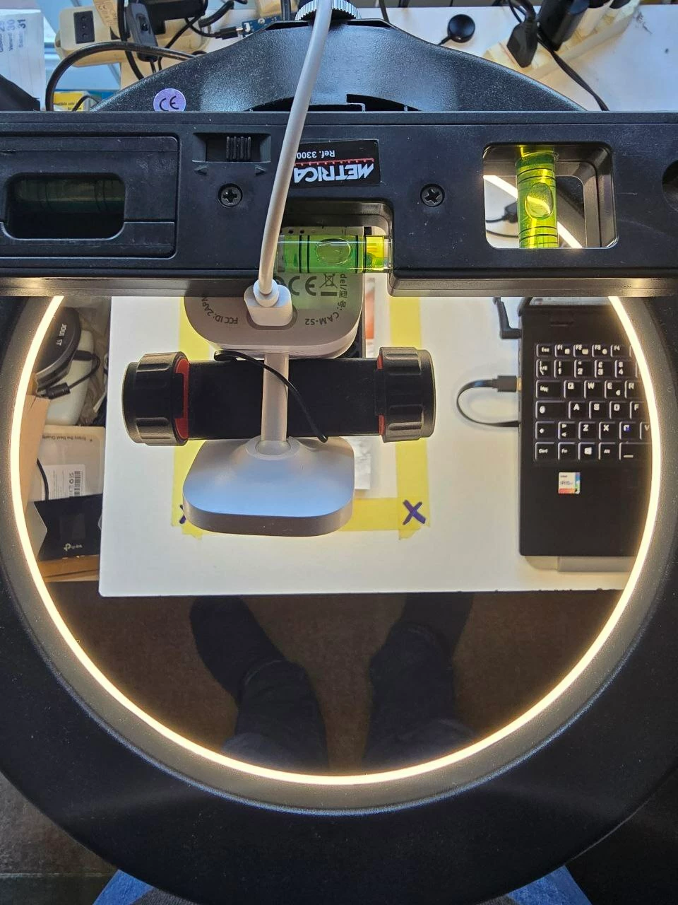 The next action, in order to make the setup repeatable, is to measure the height of the camera from the tabletop where the loading area is located; this height for the SONOF CAM-S2 is 40cm (15" 3/4), so we added a ring light with adjustable arm to support the camera exactly over the load area.