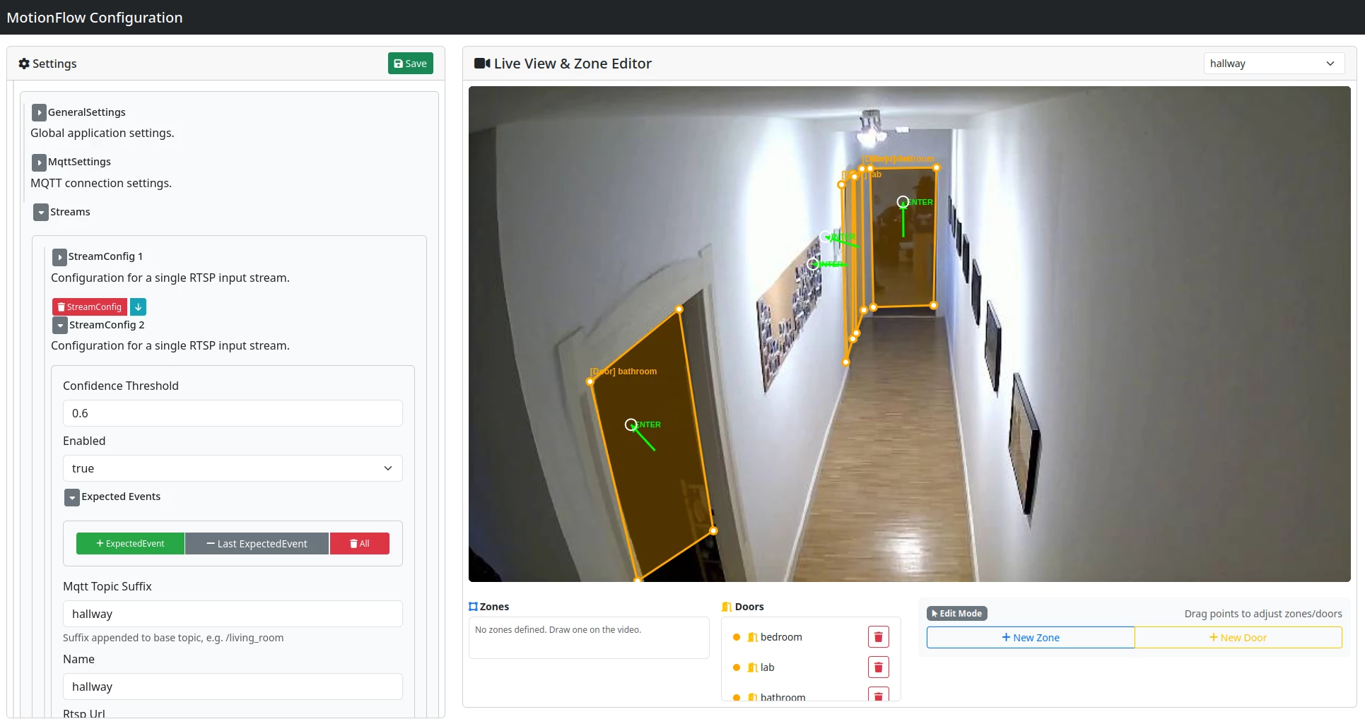 MotionFlow turns one (or several) RTSP cameras into a privacy-preserving activity sensor for the smart home. Instead of “motion / no motion” that PIR sensors provide, it tries to answer the more useful questions: Is someone sitting at the desk? Walking through a room? Lying down on the couch?