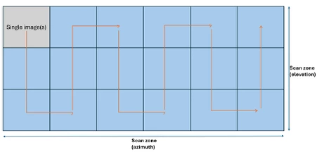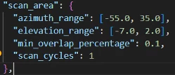 In very simple terms, the system lets the user define a “scanning zone” in terms of azimuth and elevation angle ranges in front of the gimbal. This is the area we want scanned continuously. In my case, I set it to the extents I could see on both sides. The angles are in gimbal coordinates, with zero azimuth angle in front of the gimbal.